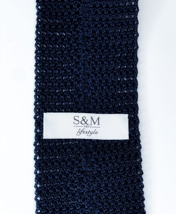 Cravate classique à pointe diamant, bride rapportée, doublure jacquard contrastée marine et point de bourdon très garni.